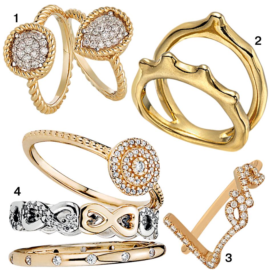 Тонкие золотые кольца продаются по отдельности, но носить их полагается по несколько штук на среднем пальце.