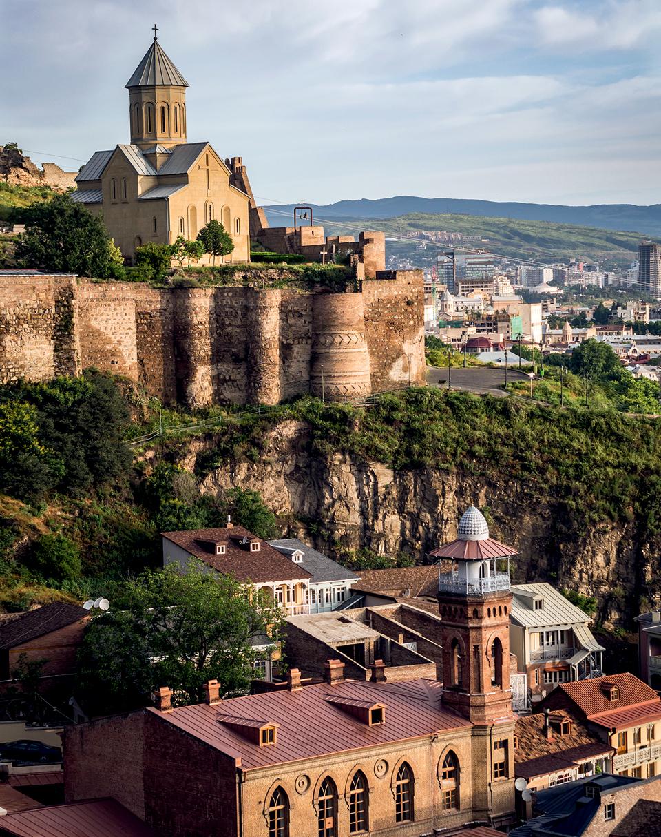 Потом идите гулять по Старому городу, по набережной Куры доберитесь до района серных бань. Не все понимают, что это такое, так что объясню. Бани подземные, наружу торчат только их полукруглые крыши. Вода из горячих источников спускается сюда с гор. Я это все обожаю. Пахнет, конечно, тухлыми яйцами, но быстро привыкаешь. Процедура, которая по‑грузински называется «киса» (произносится как «кхиса») — это очень серьезный пилинг всего тела. Вас вымочат в горячей ванне, ототрут варежкой и старинным составом, снимут шелуху клочьями. Выйдете оттуда как новорожденные. Самая красивая баня, в иранском стиле, только что отреставрированная — Орбелиановская, Пушкин посещал как раз ее. Если повернете в сторону скал, найдете тайный водопад — к нему недавно открыли тропинку.