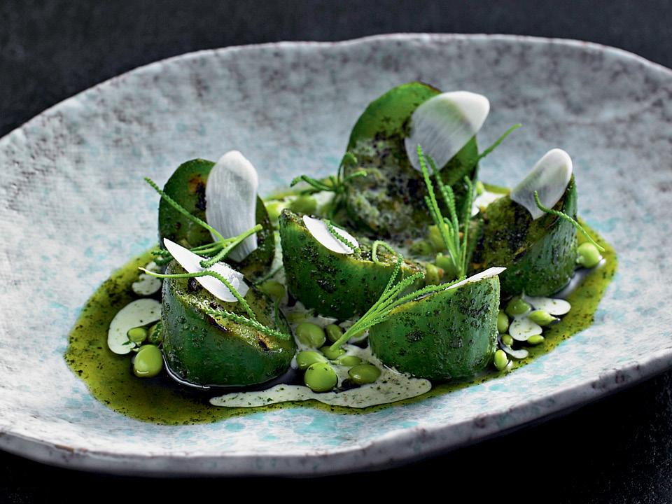 На этих полутора тысячах квадратных метров Бен выращивает ананасный шалфей (это он благоухал ананасом), кровохлебку (а она пахла огурцами), любисток, кервель, дюжину видов базилика, полтора десятка разновидностей мяты, настурцию и еще сотню других трав, съедобных цветов, ягод, овощей и фруктов. Без удобрений, даже органических. В открытом грунте или больших ящиках, сколоченных своими руками. И руками двадцати других работников кухни: поваров, поварят, судомоек, рабочий день которых начинается здесь, в саду. В восемь утра, пока не жарко, они поливают кусты, пропалывают грядки, сажают что-то новое. К одиннадцати часам пучки шалфея, мяты, кервеля, базилика, цветы календулы и топинамбура, листья настурции собирают в большие синие ведра, в которых разнотравье и прочий урожай поступают на кухню Attica.