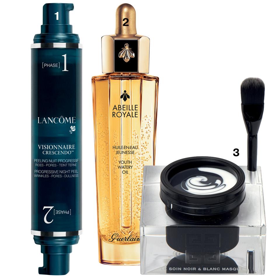 1. Пилинг Lancôme предлагает профессиональный уход на дому. Все необходимое собрано во флаконе Visionnaire Crescendo, 4980 руб., рассчитанном на месяц. В одном отсеке — фруктовые кислоты, которые мягко отшелушивают верхний слой кожи. В другом — салициловая и гликолевая кислоты, выравнивающие тон.