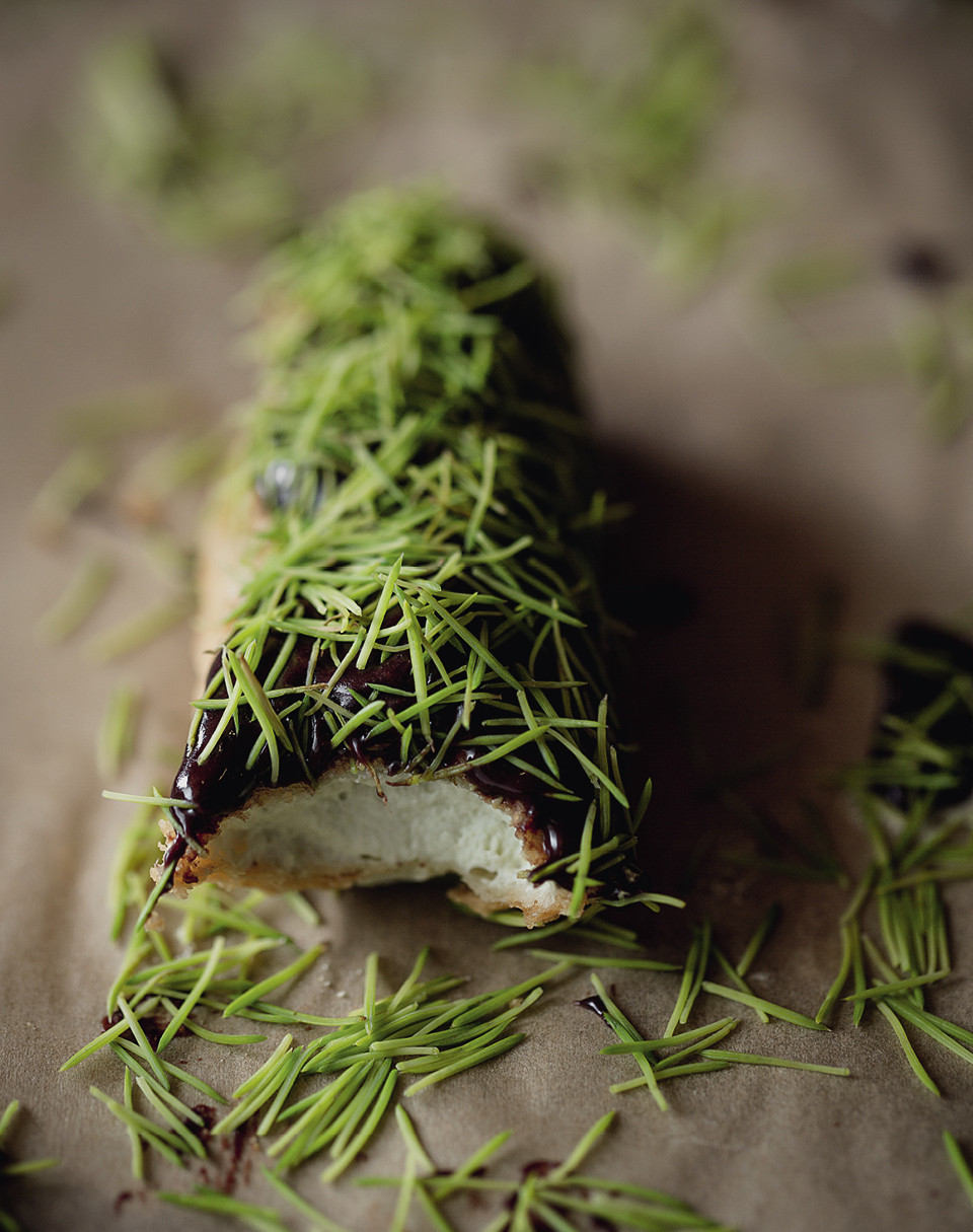 Конечно, с возрастом привычка жевать сосновые колючки заменилась множеством других, не всегда столь же полезных. Но каждый раз, попадая в весенний лес, я вспоминаю кислый хвойный вкус детсадовской жвачки, и руки сами тянутся к побегам. К концу прогулки мои карманы всегда набиты молодой нежной хвоей. Возвращаясь домой, я наполняю собранным миску и начинаю думать, в какую бы стряпню все это богатство пристроить. Я готовил с хвоей кашу, подавал к рыбе, солил, засахаривал, варил варенье. А однажды приготовил с ней эклеры — не французскую классику, а скорее советские заварные пирожные, которые мастерски делал мой отец.