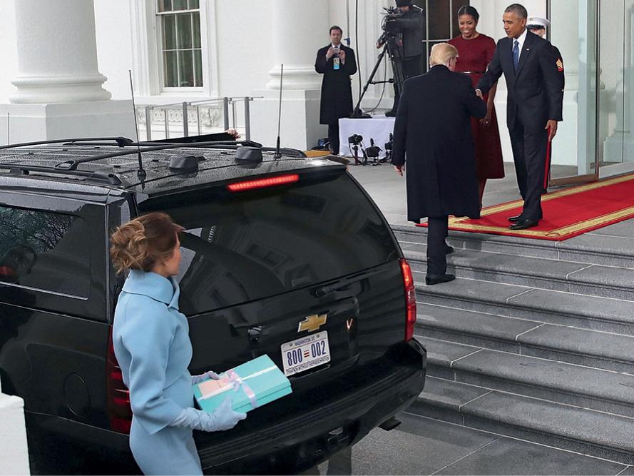 Традиция предполагает: президент США должен хотя бы создавать видимость, что его брак — счастливый. Даже Клинтоны порой демонстрировали на публике привязанность, подтрунивали друг над другом, выглядели близкими людьми. В случае Трампов с первых минут церемонии инаугурации было видно: что-то здесь не так. Пересмотрите на YouTube: внедорожник Трампов подъезжает к Белому дому, Барак и Мишель Обама ждут на крыльце. Дональд выходит из машины и взмывает по ступеням, Мелания семенит далеко позади с большой коробкой Tiffany в руках. В аналогичной ситуации Обама, Буш, Клинтон шли рядом со своими женами. И ладно бы только это. Во время благословения евангелиста Франклина Грэма президент обернулся и взглянул на Меланию. Та моментально, как по команде, включила улыбку. Но стоило ему отвернуться, и ее лицо тут же помрачнело. Вечером, во время танца президента и первой леди под My Way Мелания казалась скованной и будто пыталась отстраниться от мужа.