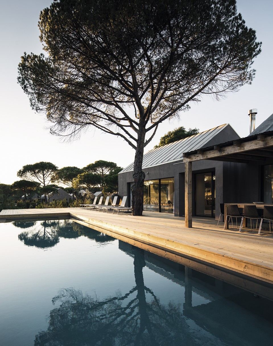 Компорта — это не город, а примерно сто двадцать квадратных километров земли в регионе Алентежу: между заповедником Эстуариу-ду‑Саду и полуостровом Троя на севере, Атлантическим океаном на западе, городком Грандола на востоке и городком Мелидеш на юге. Двенадцать из них занимает белоснежный Praia da Comporta — самый, наверное, длинный дикий пляж в Европе. А за ним — уникальная экосистема с песчаными дюнами, пиниями, пробковыми дубами и рисовыми полями. Последняя перепись населения была восемь лет назад. Тогда во всем округе постоянно проживали одна тысяча двести шестьдесят восемь человек. На каждую душу населения до сих пор приходится по несколько розовых фламинго, серых цапель, белых аистов и дельфинов в устье реки Саду. В дюнах прячется десяток деревень и деревушек, включая условно центральную, которая тоже называется Компорта (по-португальски это значит «шлюз», и не исключено, что в другое измерение).