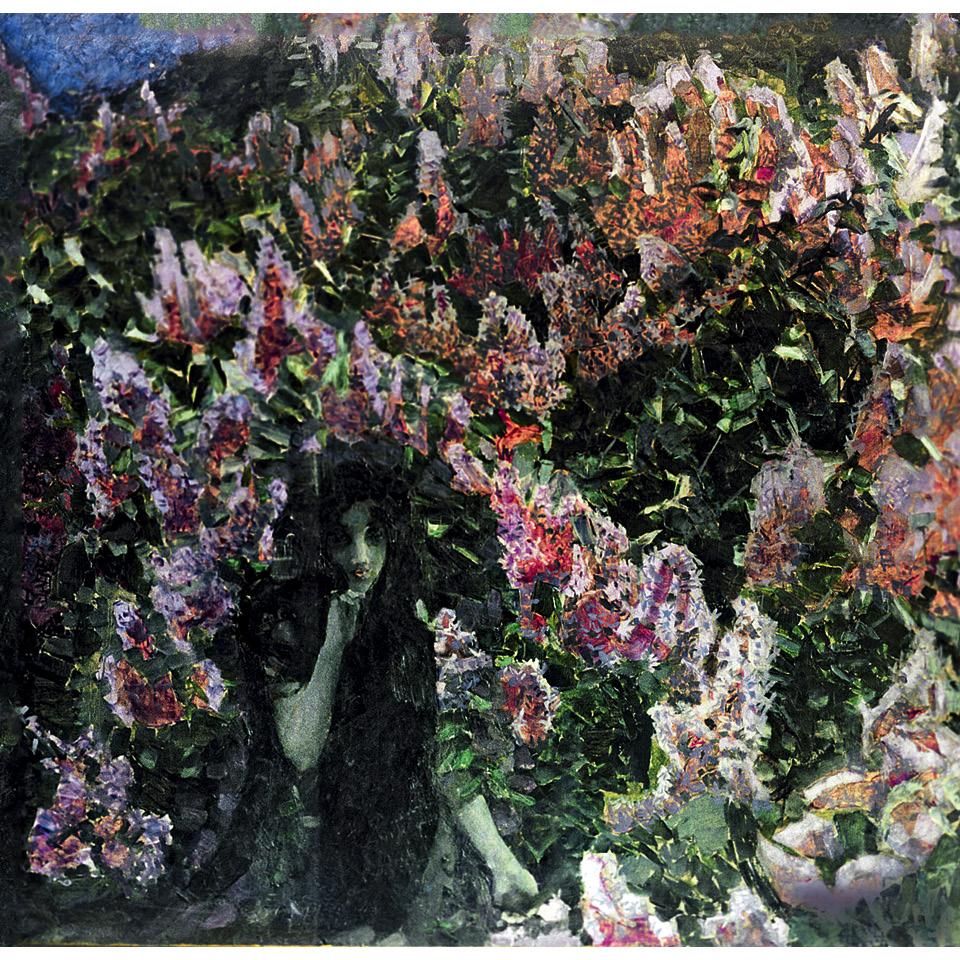 С одинокою веткой сирени