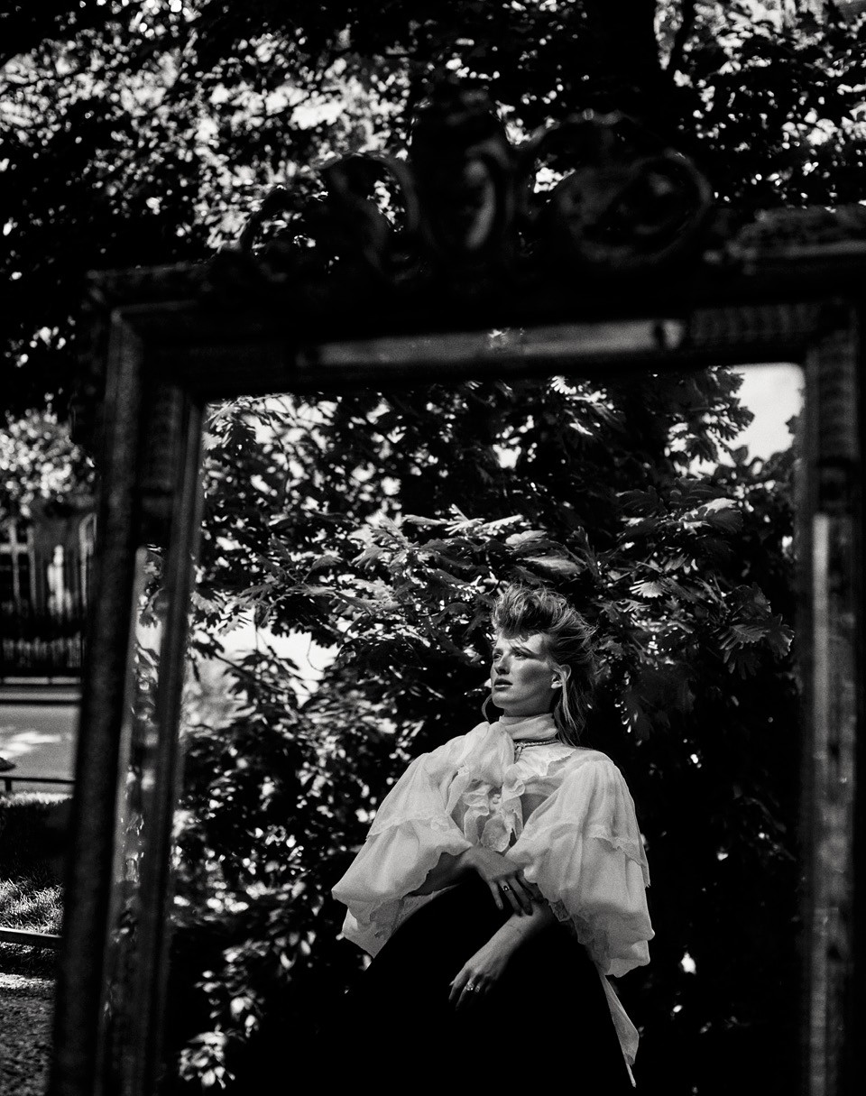 Мне интересно посмотреть на человека, который в принципе сможет — и захочет — ее испортить. Потому что Соня Эрнст, в девичестве Заика, красива бесспорной, необсуждаемой красотой. Еще больше она довольна костюмами, созданными ветераном «Ленфильма», соратницей Алексея Германа-старшего Екатериной Юрьевной Шапкайц, которая работала и на «Викинге» (там у Эрнст тоже была маленькая роль, но на финальном монтаже ее вырезали без оглядки на фамилию). Платьев в «Союзе спасения» немного, и на них отвели душу. «Возможно, из-за кино я лишена трепета перед светскими мероприятиями, — говорит Соня. — Ведь обычно трепет связан с тем, что вот ты сделал красивую укладку, надел платье, и все тебя увидели. А для меня это рутина».