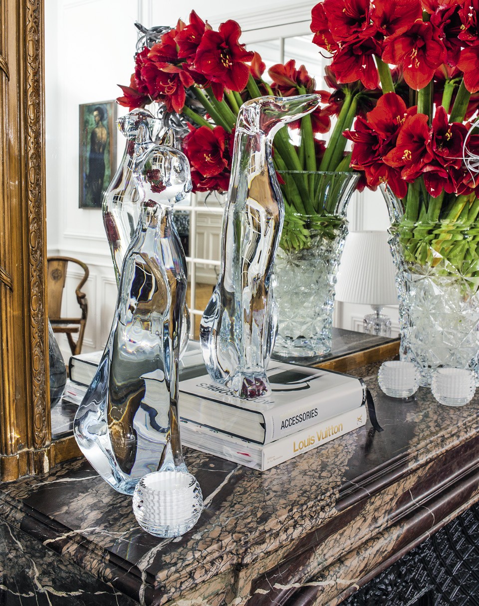 Пять лет назад во Францию их приехало пятеро: Даниэла с мужем, сын с дочкой и кошка. Муж с кошкой сейчас проводят больше времени в родной Колумбии, там у семьи тоже дом. Сын учится в Америке, в Беркли, дочь — там же, в Стэнфорде, а в Париже Даниэла живет с Baccarat. И в переносном смысле: исторический парижский дом марки — за углом, в пяти минутах ходьбы. И в практическом: подсвечники, люстры, бокалы на столе. Но все-таки это живая квартира, а не шоурум.