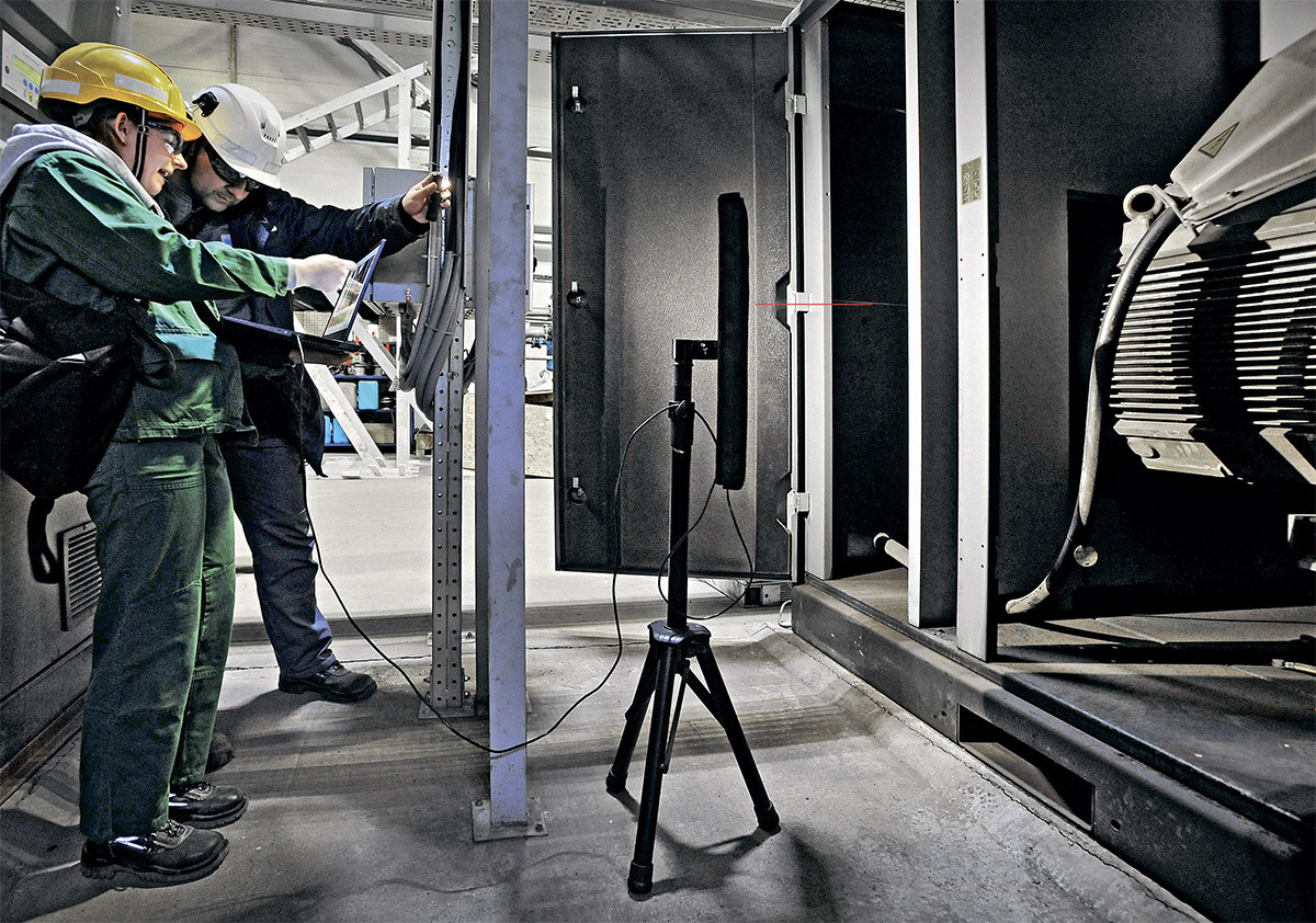 Массив микрофонов переносной версии системы SVS прислушивается к работе двигателя компрессора на площадке ГМК «Норникель», как доктор – к дыханию пациента.
