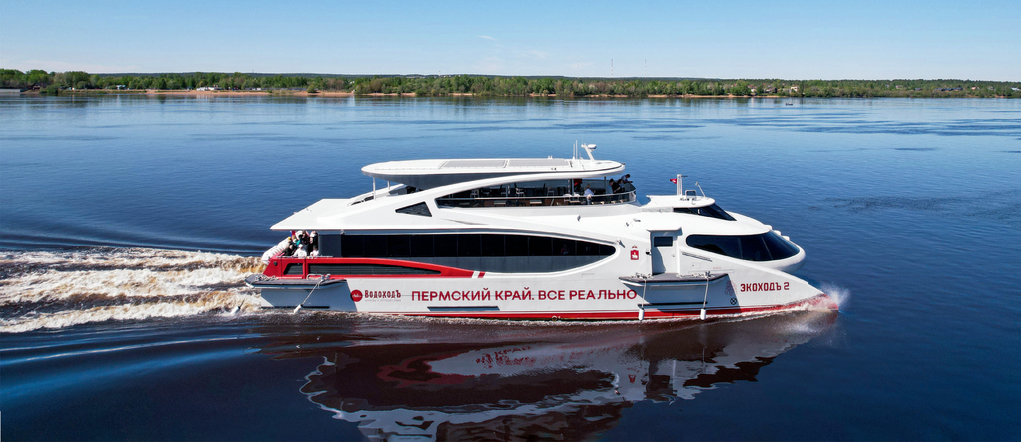 Почему обновление речного флота решили начать именно с катамаранов? Почему не продолжили традицию строительства судов на подводных крыльях? Потому что катамараны имеют меньшую осадку, они устойчивее – и комфортнее для пассажиров. А еще многокорпусное судно позволяет запроектировать большую площадь палубы, да и сами корпуса можно сделать длиннее – это важно для скоростных судов, а они среди новых катамаранов тоже есть. В навигацию 2024 года по рекам страны ходили катамараны уже трех новых моделей, причем все они имеют длину около 32 м и рассчитаны на перевозку 130 человек. Впрочем, на этом сходство заканчивается. Заказчиками выступали две компании: «ВодоходЪ. Пассажирский Порт», работающая в нескольких регионах, и петербургская «Нева Тревел».
