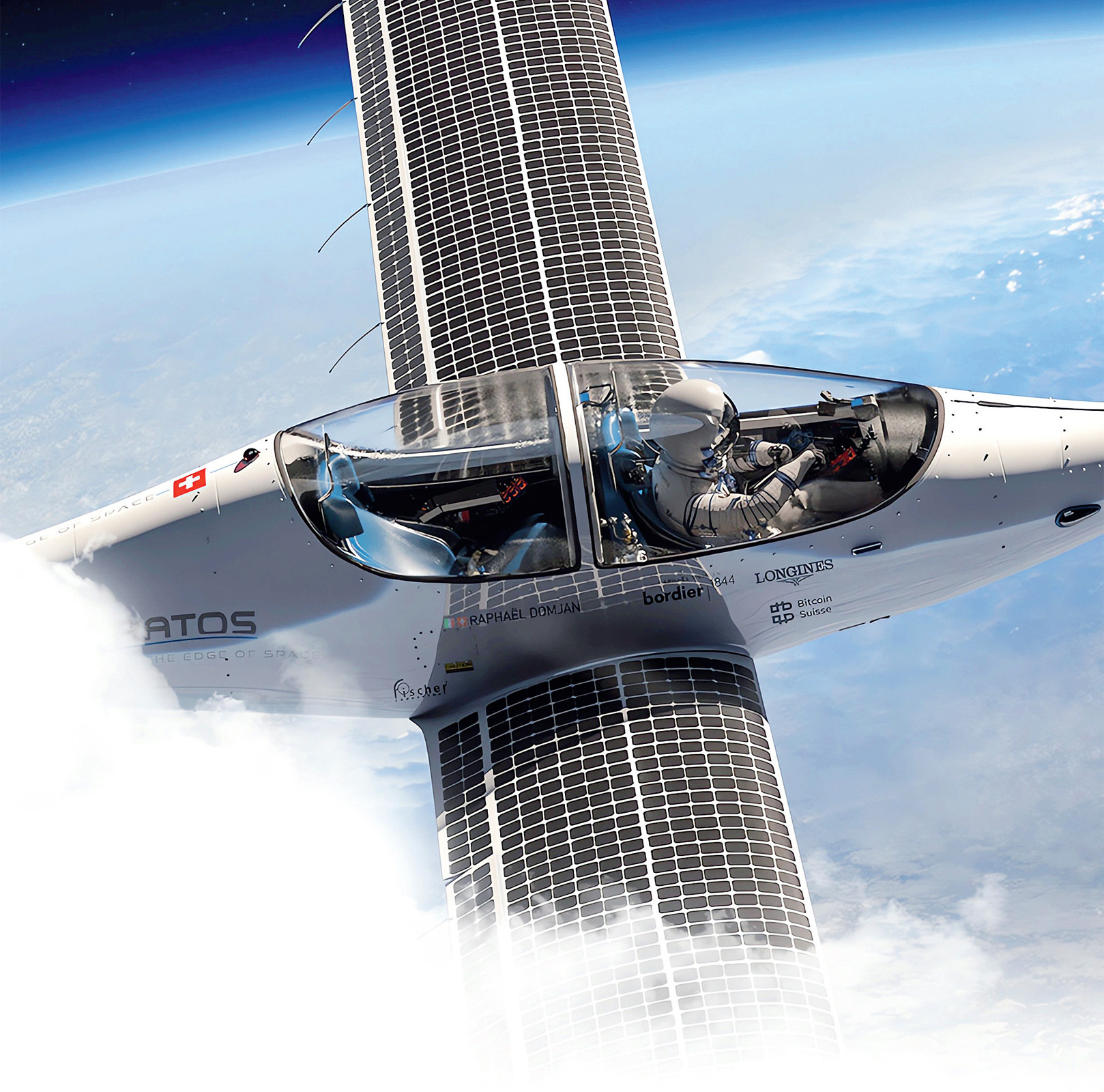 Основатель швейцарского стартапа SolarStratos Рафаэль Домжан лично пилотировал летательный аппарат, установив неофициальный рекорд высоты подъема для самолетов с солнечными батареями и электродвигателями – более 9,5 км. SolarStratos HB-SXA оставался в воздухе свыше пяти часов, медленно поднимаясь и еще медленнее снижаясь: по сути, это легкий (450 кг) глайдер, планер, парящий в восходящих потоках воздуха за счет длинных крыльев и лишь слегка помогающий себе трехлопастным пропеллером, который приводится в движение электродвигателем мощностью 50 кВт. Поэтому солнечных панелей, вмонтированных в верхние поверхности крыльев, в сочетании с аккумулятором на 20 кВт·ч достаточно для поддержания полета на протяжении целых суток. По задумке, в будущем SolarStratos сможет подниматься до самой стратосферы, выше 25 км, и станет летающей лабораторией для исследования атмосферных явлений и проведения экспериментов. Для снижения массы от герметизации кабины пришлось отказаться, поэтому на таких высотах пилоту требуется специальный компрессионный костюм, защищающий от экстремально низких давлений и температур, – он уже разработан в российском НПП «Звезда».
