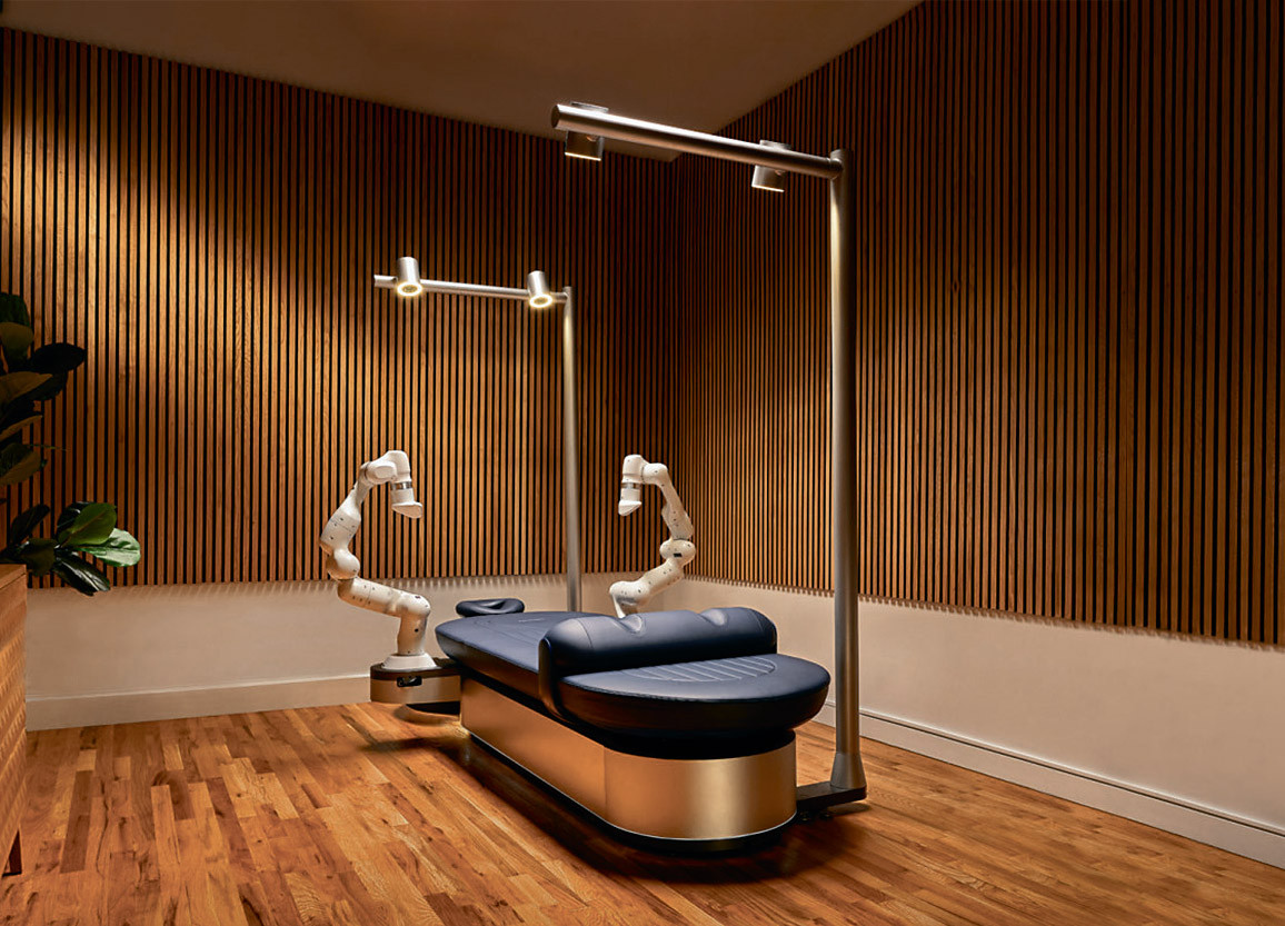 В июне в Нью-Йорке откроются первые точки сети Aescape – стартапа, создавшего роботизированный массажный стол. В систему встроено 20 программ: для восстановления после занятий спортом, для расслабления и т.п. Предварительно она проводит сканирование тела, составляя его 3D-модель по более чем 1,1 млн точек и определяя ключевые участки для обработки, и лишь затем в дело вступает пара ловких манипуляторов. Такие машины слишком дороги для индивидуального пользования, но могут стать популярной общедоступной услугой: стоимость сеанса составляет всего 60 долл. – в разы дешевле, чем у живого массажиста.