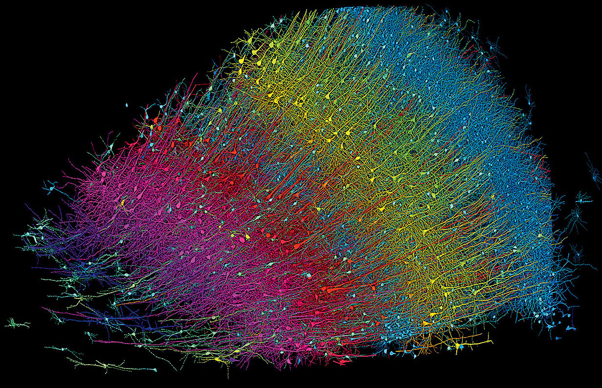Ученые из Гарвардского университета в коллаборации с Google создали полноценную цифровую модель одного кубического миллиметра человеческого мозга. Они сумели воспроизвести систему из 57 тыс. отдельных нейронов и 150 млн синапсов, контактов между ними, плюс 230 мм капилляров, которые снабжают клетки кровью. Вся эта информация занимает порядка 1400 Тб и получена на основе электронных микрофотографий срезов мозга реального пациента, скончавшегося от эпилепсии. Созданные в Google алгоритмы позволяют работать с моделью, выделяя нужные участки и рассматривая их в мельчайших деталях. Исследования уже помогли обнаружить один весьма любопытный паттерн, который объединяет с полсотни синапсов и влияет на активность огромного числа нейронов. Возможно, он как-то связан с эпилептическими приступами, и его открытие поможет найти эффективные способы их лечения.