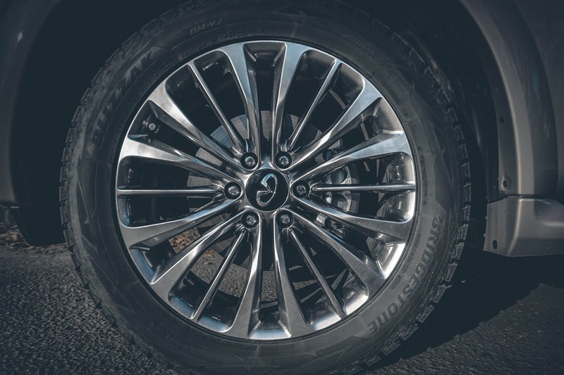 В автоматическом режиме момент на передних колёсах зависит от степени пробуксовки задней оси, в режиме 4H муфта жёстко заблокирована, а в 4L вдобавок включается понижающая передача. И всё: в отличие от младшего брата Nissan Patrol, блокировки заднего дифференциала у «Инфинити» нет. Зато, на зависть конкурентам, у QX80 независимые подвески спереди и сзади. Оба стабилизатора поперечной устойчивости оснащены гидравлическими клапанами, которые под нагрузкой закрываются и препятствуют кренам.