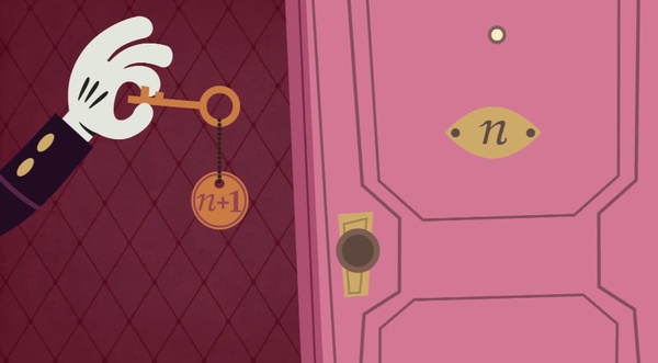 Всего-то и нужно представить себе гостиницу с бесконечным количеством комнат. И очень трудолюбивым ночным администратором. Каким-то образом ночью отель оказывается забит под завязку - соответственно, мы имеем бесконечное количество гостей. Внезапно заходит человек и просит комнату, а администратор, вместо того, чтобы ему отказать, решает освободить для него одну комнату в этом бесконечном отеле. Для этого просто нужно переселить постояльца из номера 1 в номер 2, постояльцу из второго - в третий. И так далее. То есть каждый переселится из номера n в номер n + 1, и каждому хватит места, потому что количество номеров в гостинице бесконечно.