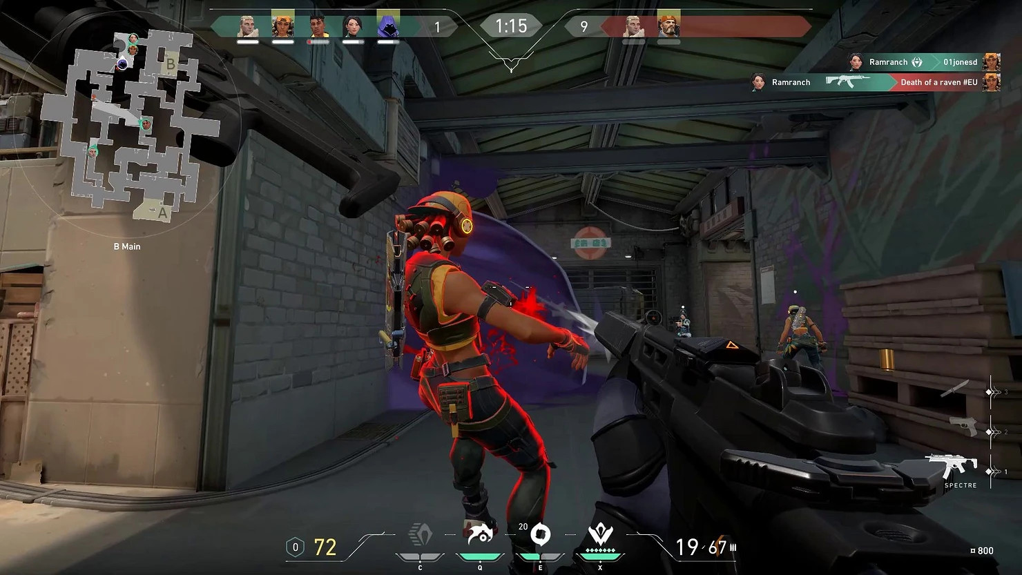 Суть Valorant ровно такая же, как и в КС:ГО — установка заряда. Только бомба здесь зовется “Spike”. Режима с эвакуацией заложника нет. Однако сама установка “спайка” и продвижение к месту закладки совершенно не похожи на своего “старшего брата”. Также перед началом матча каждый игрок выбирает персонажа, который обладает своим уникальным набором способностей: кто-то бросает огненный шар, который наносит урон врагам и лечит союзников, кто-то выпускает беспилотники для разведки, кто-то способен анализировать убитых членов команды соперника, чтобы раскрыть местоположение оставшихся врагов.