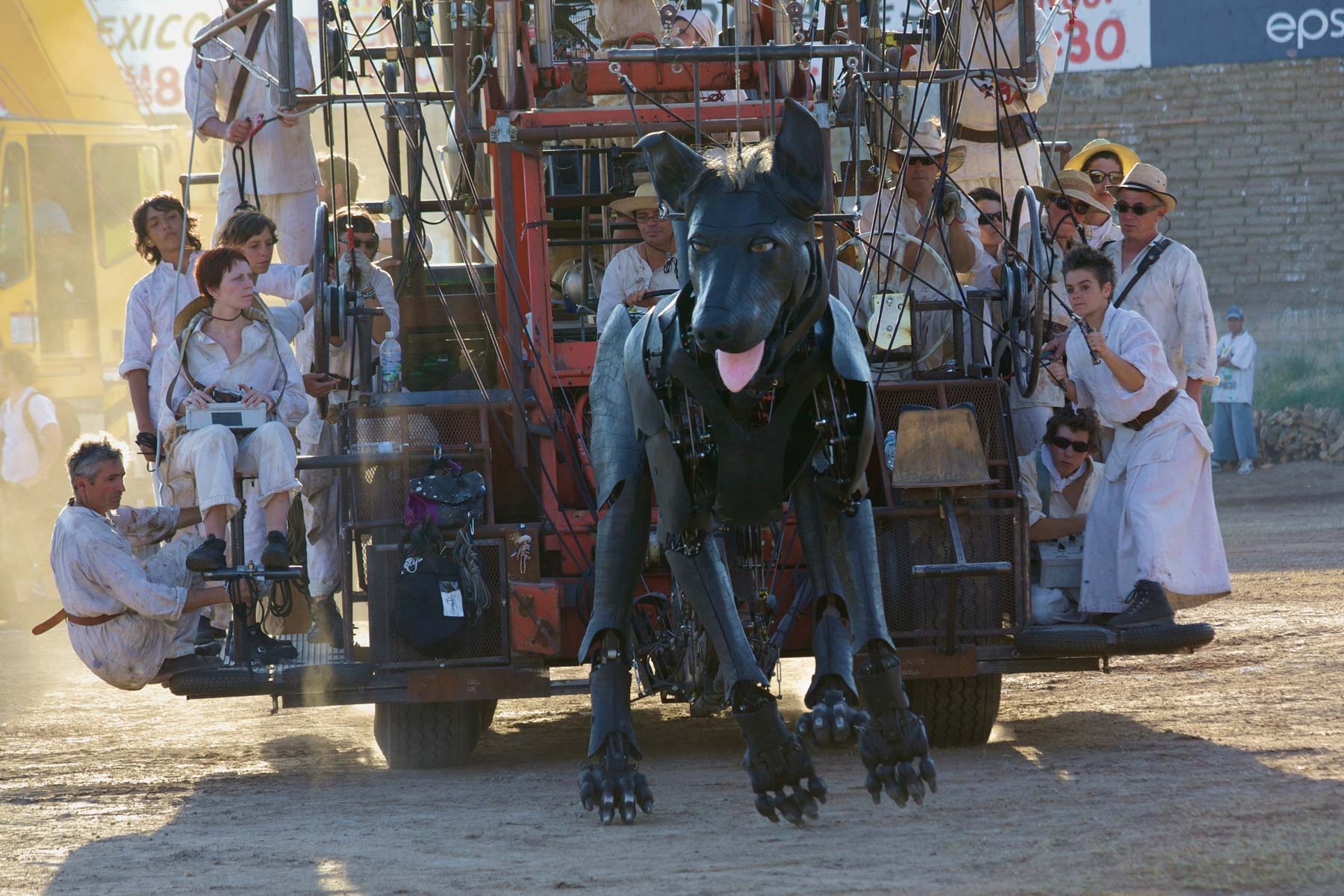 Огромные марионетки способны не только переставлять ноги при ходьбе - они моргают, вздыхают, отыгрывают целый спектр эмоций и ищут друг друга на улицах города, а моменты их встреч особенно трогательны. За впечатляющей реалистичностью движений стоит слаженная работа десятков механиков и каскадеров, управляющих системой гидравлических блоков и полиспастов. Каждая марионетка сочетает в себе традиционную кукольную механику и принципы корабельного такелажа.