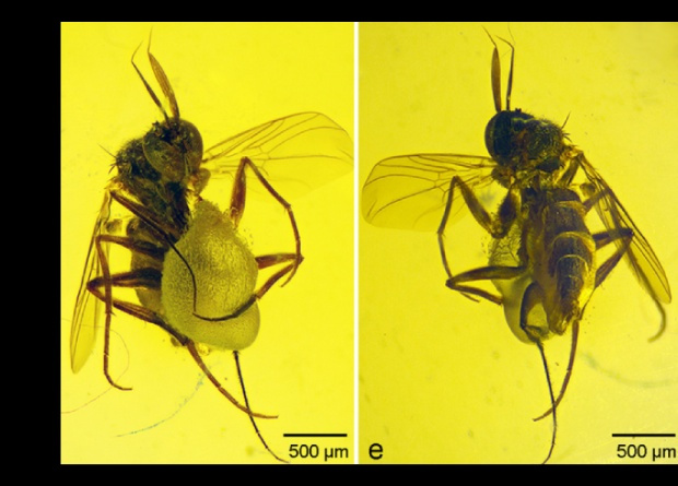 Китайские и американские ученые обнаружили в бирманском янтаре самца эмпидоидной мухи (Empidoidea) с брачным подарком в виде выделений слюнных желез. Это первая находка брачного подарка в палеонтологической летописи. Кроме того, открытие позволило прояснить детали эволюции этого явления среди эмпидоидных мух. Исследование опубликовано в журнале Gondwana Research.
