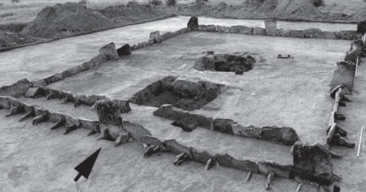 В более позднюю эпоху стелу поместили в ограду кургана
