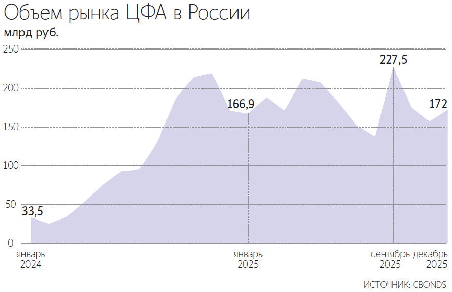 Основной вклад в рост рынка в 2025 г. внесли короткие выпуски ЦФА – от нескольких недель до месяца, замечают в пресс-службе Альфа-банка. Кроме того, на рынок ЦФА начали активнее выходить финансовые организации – как в роли инвесторов, так и в роли эмитентов. Это сформировало якорный спрос и резко ускорило масштабирование рынка, отмечают в банке.