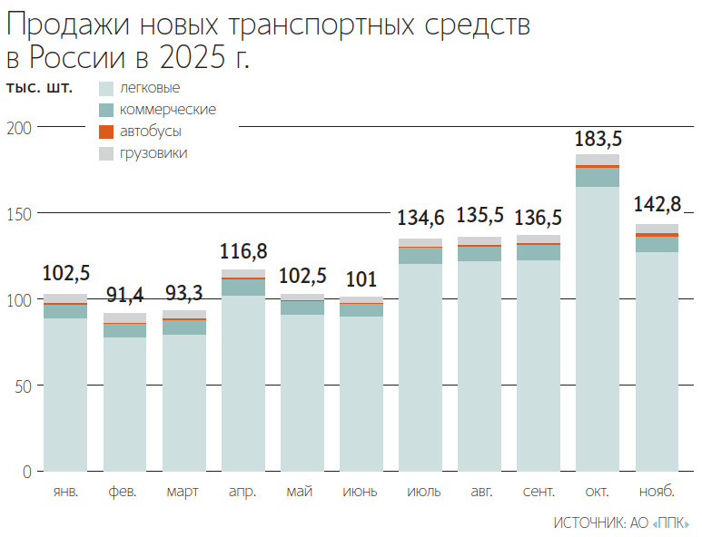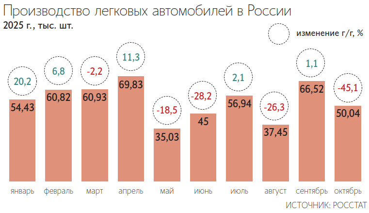 Разница в динамике связана с ростом доли выпущенных в России автомобилей на рынке – с 44 до 55% в этом году. Продажи таких машин к концу года, кстати, хорошо нагнали темп – по оперативным данным, на середину декабря они уже превысили 800 000 единиц, это всего -1% к прошлому году.
