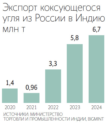 Вместе с тем, по данным Центра ценовых индексов (ЦЦИ), в 2024 календарном году общие поставки российского угля (коксующегося и энергетического) в Индию снизились более чем на треть по сравнению с 2023 г. до 25 млн т. Основной причиной эксперты называли сложности с перевалкой угля в портах юга России («Ведомости» писали об этом 3 февраля).