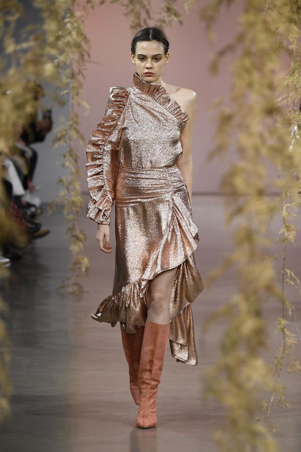 Излюбленный материал модниц 80-х снова в тренде! Самым смелым мы советуем обзавестись эффектным платьем из ламе (непременно с асимметричным верхом, рюшами или объемными рукавами) и отправиться в нем на самую громкую вечеринку сезона. А тем, кто пока не готов принять обличье диско-дивы, подойдут топы и блузы из ламе — их ты сможешь носить даже в офис при условии лояльного к фэшн-экспериментам дресс-кода.