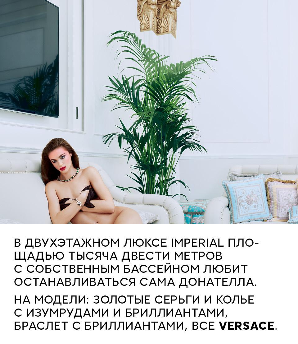 И вот свой Palazzo Versace получил Дубай. На праздник в честь открытия Донателла прибыла в сопровождении топ-моделей Хелены Кристенсен, Алессандры Амброзио, Наташи Поли. Прямо посередине бассейна с фирменной Медузой был установлен помост с диджейским пультом, и танцы с видом на Персидский залив не утихали до утра.