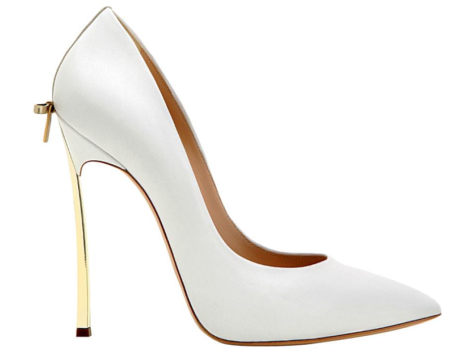 Итальянский обувной бренд Casadei дополнил классические белые лодочки золотыми шпильками. С ними ваш проход к алтарю оценят все!