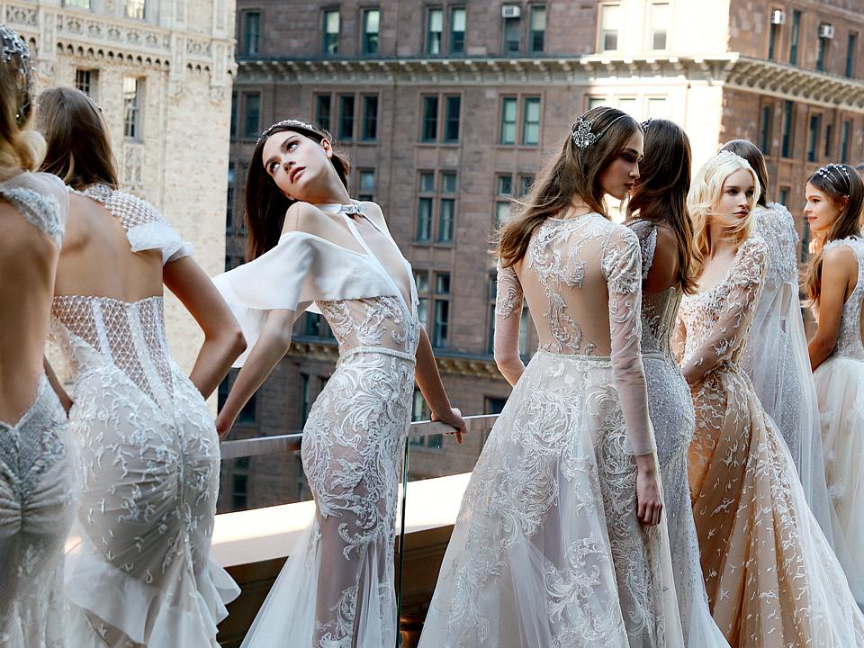 Оттенки шампанского и пепельной розы, вышивка и перья, вырезы и шлейфы — подвенечные платья молодой израильской марки Inbal Dror понравятся тем, кто не делает разницы между свадебным торжеством и подиумом.