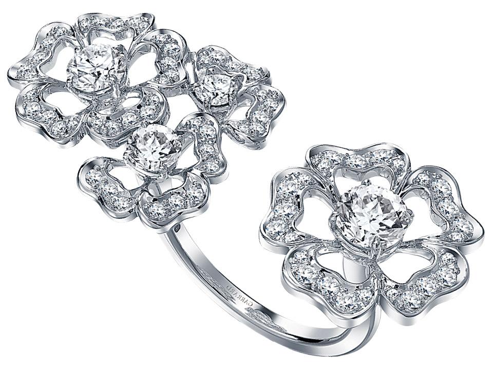 Бриллиантовое паве на драгоценностях Garrard из коллекции «Роза Тюдоров» образует геральдическую эмблему Англии — розу. В этом сезоне к браслетам и подвескам из белого золота добавились остромодные серьги-каффы и кольца-кастеты.