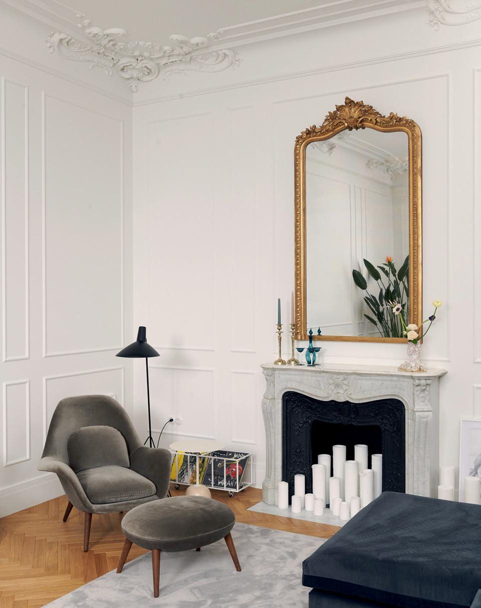 В трех метрах от читальни Ивана располагается Настин рабочий стол Palette с полочкой из черного мрамора и «стул-барашек» Elefy из коллекции испанского дизайнера Хайме Айона для датской компании &Tradition. И все же ее любимое место — уголок в спальне с креслом Pierre Paulin 1970‑х годов. «Фабрика во Франции еще работает, но мне было важно найти оригинал тех времен. Сработали хештеги в инстаграме (соцсеть признана в РФ экстремистской и запрещена), я листала ленту днями и ночами. Так и вышла на мужчину из Бельгии, который готов был это кресло продать».