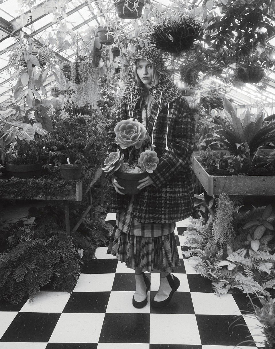 Это потрясающе, что Vogue мне предложил съемку в ботаническом саду, потому что природа — это то, что сейчас меня больше всего вдохновляет, — воодушевленно рассказывает Саша Пивоварова. — Осень прекрасна, что в Москве, что в Нью-Йорке. Сочетание цветов, утренний свет, проникающий сквозь листья, тыквы… Хочется поплыть куда-нибудь на лодке и с воды наблюдать пятна цвета на берегу».