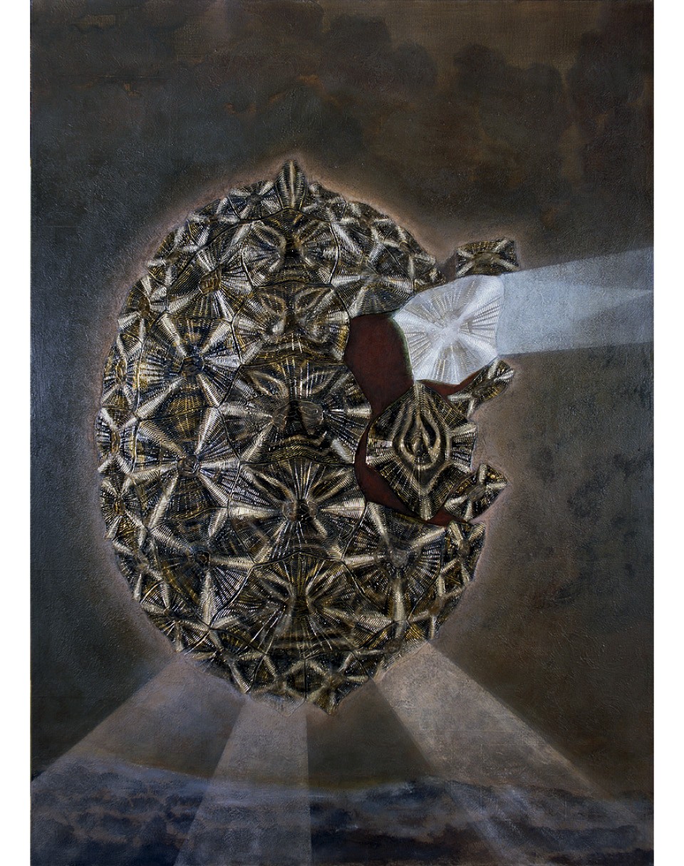 Всего на выставку попали тридцать две картины и две скульптуры, объединенные, как говорит продюсер проекта Наталия Опалева, темой космоса. Среди них «Космическая черепаха» символиста Дмитрия Плавинского. Примитивистские «Портрет с крестом» и «Цветок на красном фоне» Владимира Яковлева — полуслепого художника, полжизни прожившего в психбольнице. Сюрреалистические, вдохновленные прибалтийской природой работы эстонца Юло Соостера. Абстрактные композиции Лидии Мастерковой. «Проект системы «Плод» и «Спираль» Франциско Инфанте, больше известного своими кинетическими объектами. Метафизические натюрморты Дмитрия Краснопевцева. Экспрессивные скульптуры Эрнста