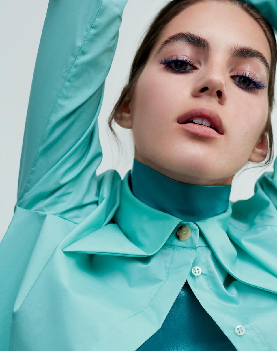 Хлопковая блузка, A.W.A.K.E.; кожаная водолазка, Viva Vox.