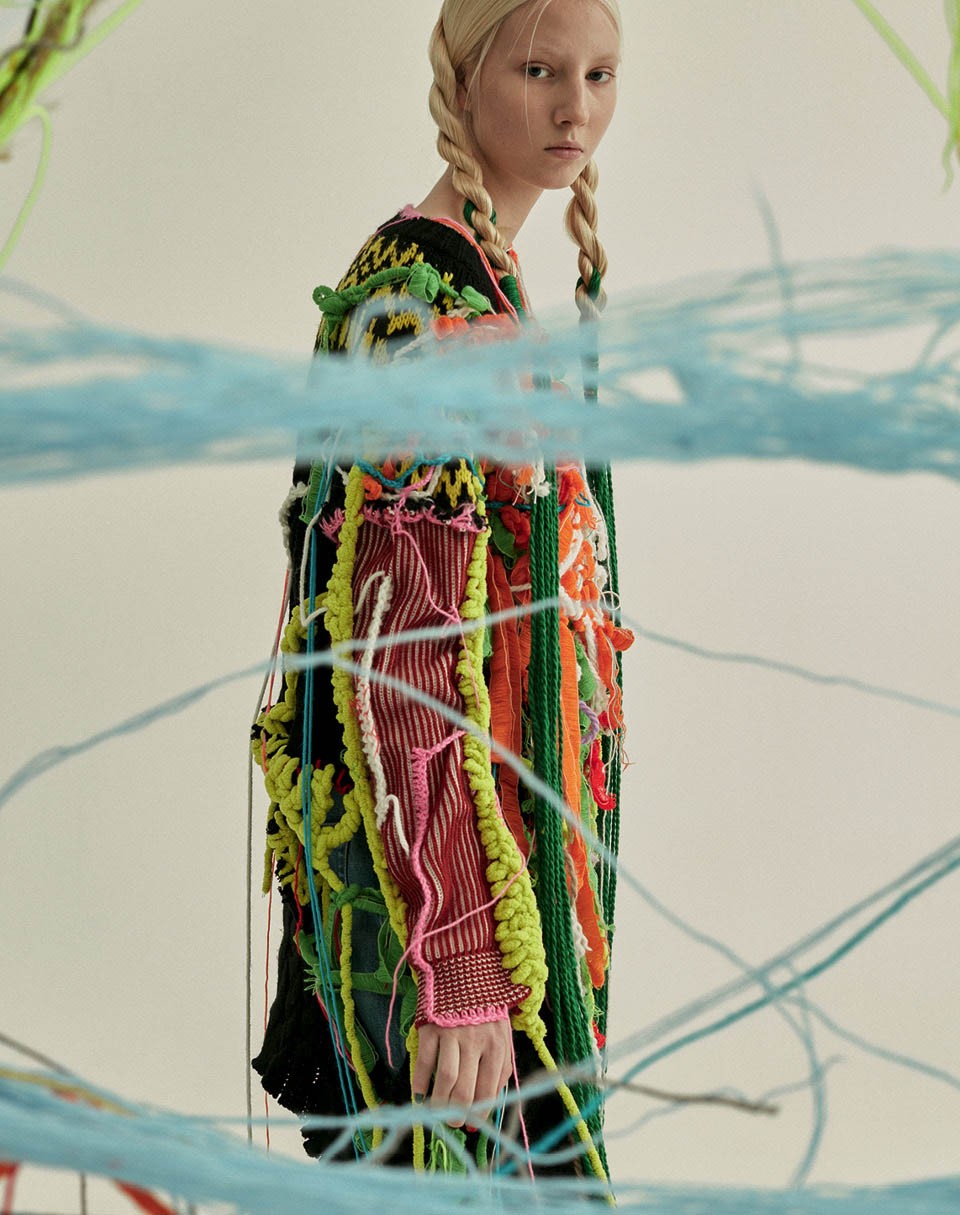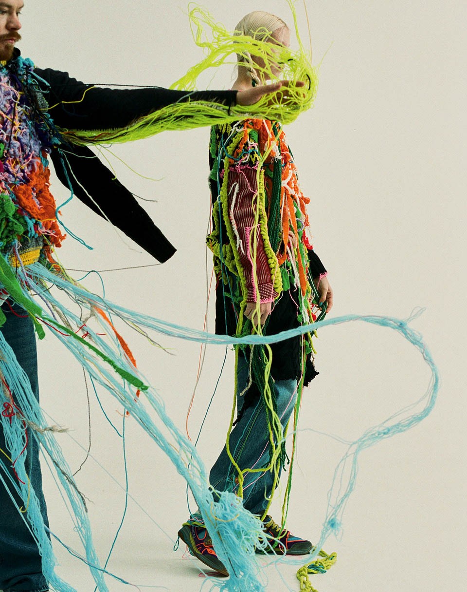 Верея — самый крошечный город Московской области. Там, в ста километрах от Первопрестольной, родился и вырос бывший главред российского Numéro, стилист Игорь Андреев. И там же в школьном кружке освоил вязание. А теперь, почти двадцать лет спустя, опять взялся за крючок — в попытке заново найти себя после того, как покинул кресло главреда. «Все говорили, что я сошел с ума: был главным редактором, а сегодня вяжет! — иронично улыбается Андреев. — Но это все предрассудки». Вооружившись целой кучей причудливых, будто недовязанных свитеров, больше уместных в арт-галерее, чем на прилавке магазина, Игорь и его друг Герман поехали в деревню — и сняли что-то вроде лукбука, который не стыдно было выложить в Instagram (соцсеть признана в РФ экстремистской и запрещена). Вскоре они получили предложение провести показ на Futurum Moscow. Андреев не потратил ни копейки: даже студию для того, чтобы в компании друзей и медитативной тишине доделать коллекцию, ему предоставила слушательница одного из курсов для стилистов, которые он ведет. К слову, продаваться вещи из дебютной коллекции Vereja2028 не будут: Игорь не хочет с ними расставаться. Вместо этого выпустит «отредактированную» линейку свитеров — без путающихся под ногами нитей. В планах коллекция номер два — с бельем, купальниками и даже обувью из веток. «Мне нравится работать с разными материалами — а тут такое единение человека с природой!»