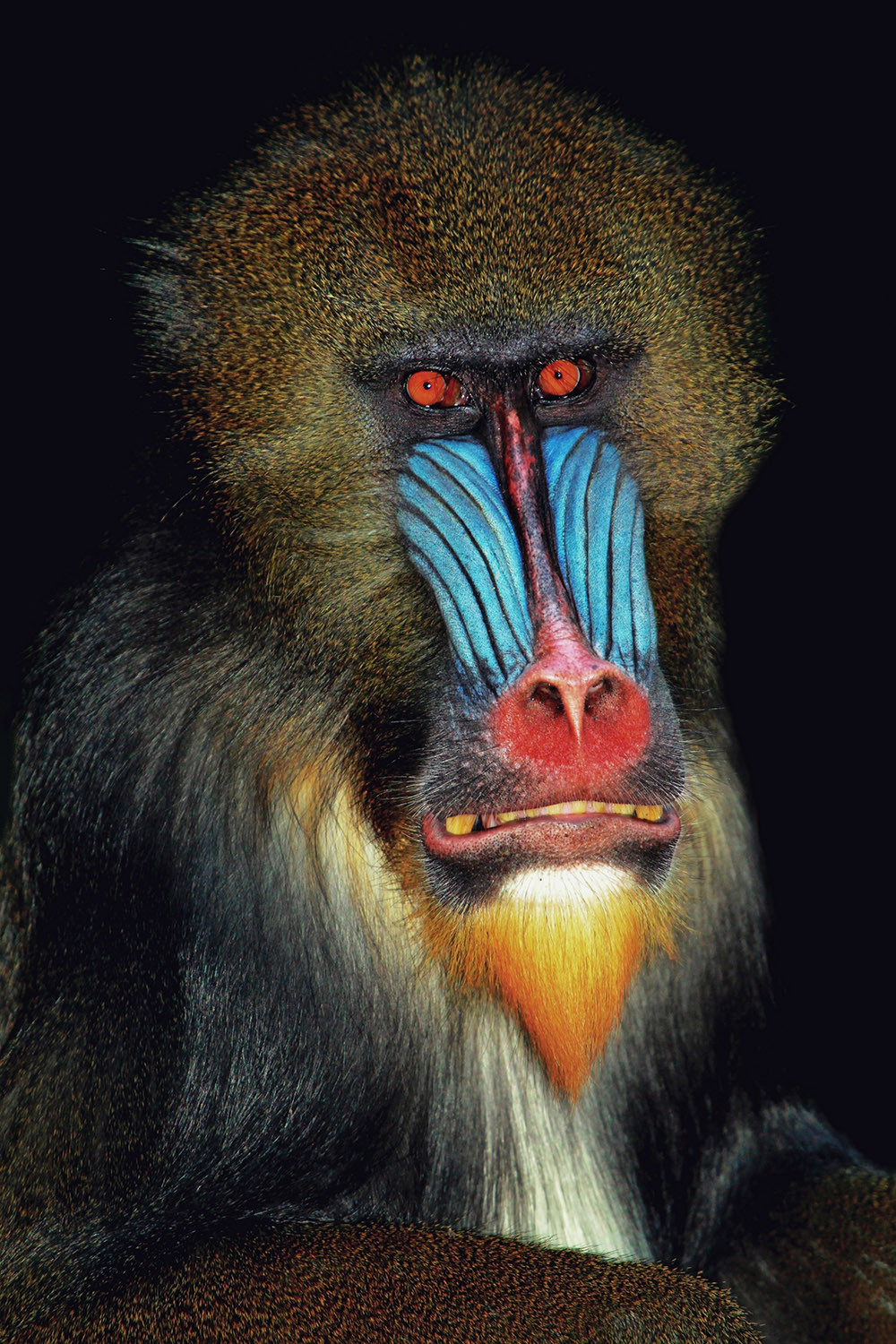 Среди млекопитающих ярко окрашенные виды – редкость, ведь и набор пигментов у них скудный, и цветовых рецепторов всего два типа. Внешность самца мандрила из африканских дождевых лесов – шедевр боди-арта: красный нос, обрамленный синими полосами, светло-голубые или фиолетовые ягодицы. Самки окрашены куда скромнее, что наводит на мысль о том, что: окраска самца – результат полового отбора.