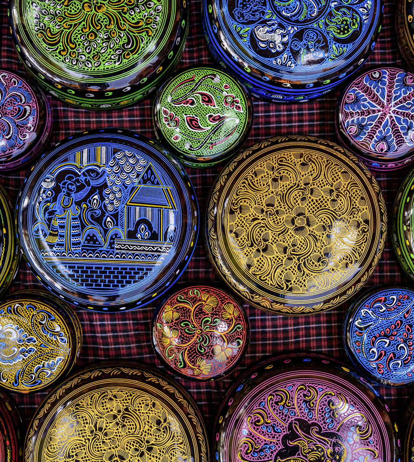 Изготовление лаковых изделий, пан-юн, входит в традиционный перечень «десяти цветов», поясняет мой собеседник. Каждый такой предмет, созданный по всем правилам, – это много месяцев работы и десятки операций. Заготовку из бамбука или дерева пропитывают смесью из смолы лакового дерева, золы, рисового отвара и других ингредиентов, а потом покрывают слоями лака, один за другим, все это с перерывами на просушку, пока верхний, самый тонкий слой, не будет готов для нанесения узоров. Иногда изделия украшают объемными орнаментами или фигурками из лаковой мастики.