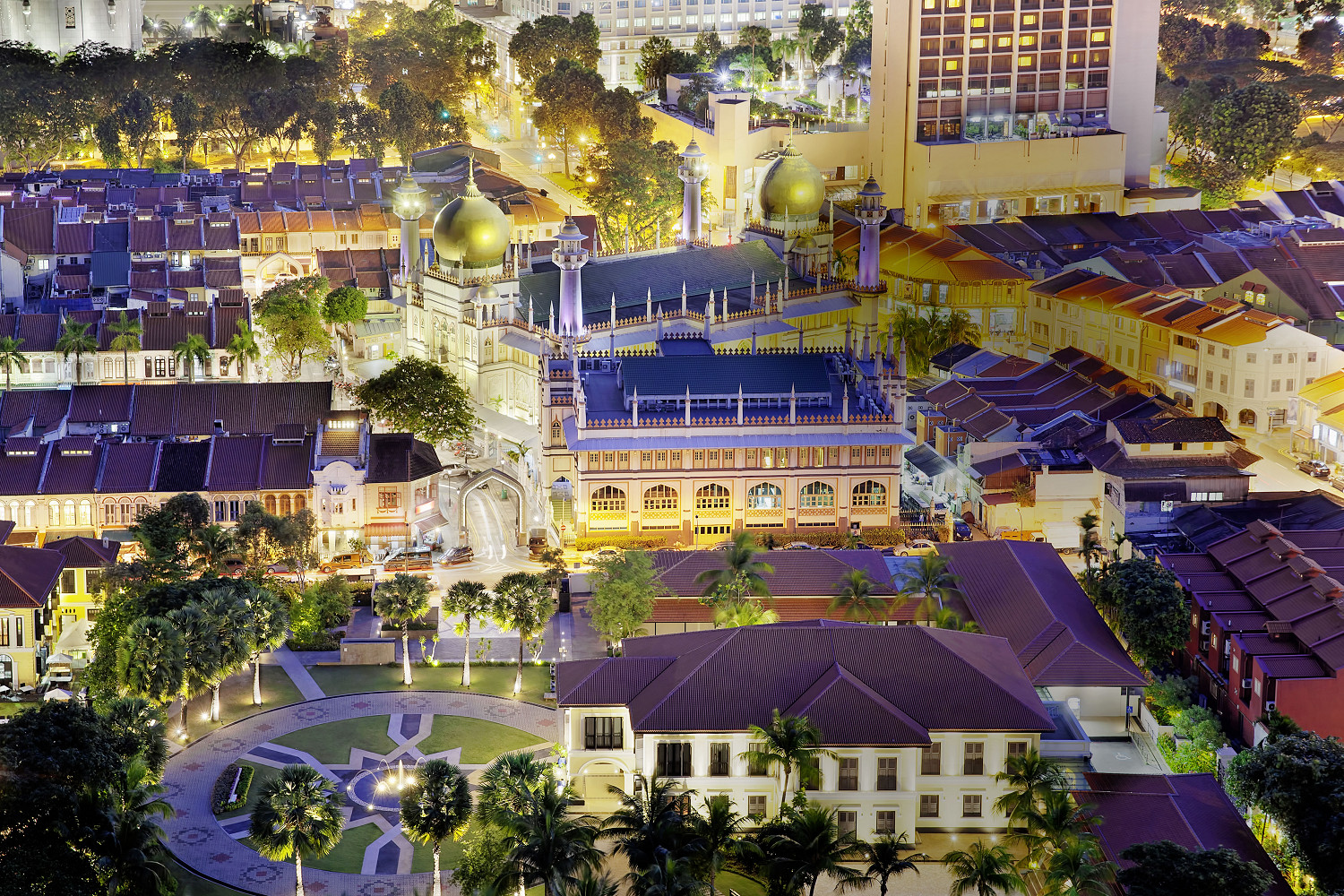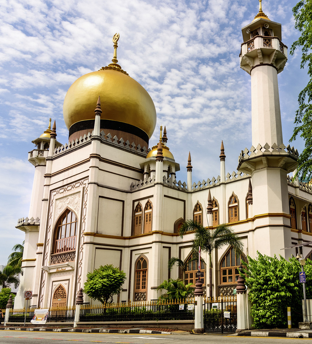 В двух шагах от него находится главная достопримечательность Кампонг Глама – мечеть Султана Хуссейна. И это очередной пример смешения разных культур. Мечеть в эклектичном стиле с индо-сарацинскими мотивами была построена в 1920-е годы на деньги мусульманской общины по проекту… ирландца. Архитектора звали Дэнис Сэнтри.
