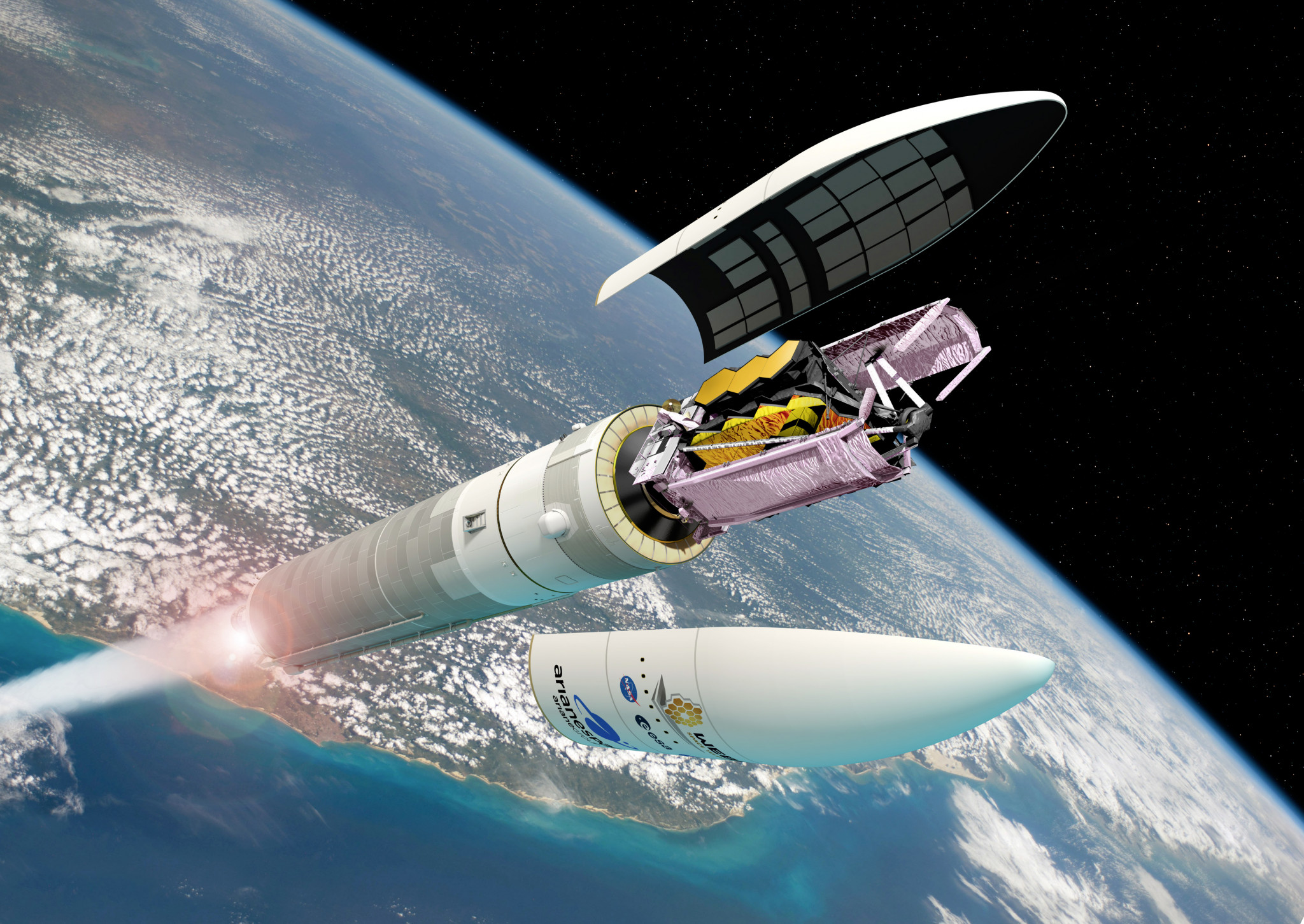 Долгое время максимальный размер зеркал для космических телескопов определялся габаритами отсека для полезной нагрузки в ракете или космическом челноке. Первым этот барьер преодолел российский радиотелескоп «Спектр-Р», который в 2011 году после выхода на орбиту развернул параболическую антенну диаметром 10 метров. Зеркало «Уэбба» тоже составное – в нем 18 шестиугольных сегментов, причем две группы сегментов при запуске находились в сложенном состоянии. Разница, однако, в том, что для радиоантенны допустимые отклонения от расчетной фигуры после раскрытия составляют 1 мм, а для оптического зеркала – сотые доли микрона. Поэтому сегменты зеркала «Уэбба» опираются на десятки механических актуаторов, которые по командам компьютера позволяют тончайшим образом регулировать положение и деформации отражающих поверхностей, собирая их в единое параболическое зеркало.