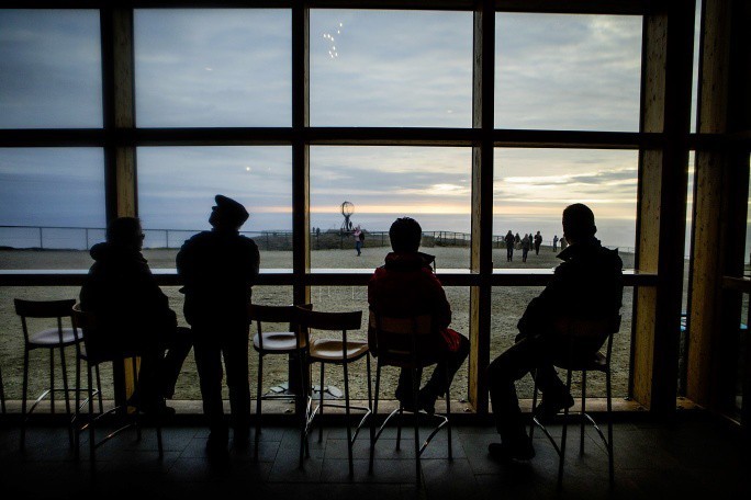 Аэропорт Хоннингсвога напоминает комнатку в демонстрационном зале магазина ИКЕА, прекрасный пример скандинавского дизайна и образа жизни: в помещении примерно в 20 м стоят стеллажи с книгами, простой маленький диван, журнальный столик, а лента для выдачи багажа в пару метров длиной спрятана у дальней стены. Окна в пол, а через них светит яркое солнце. На часах 23:30, а на улице полярный день.