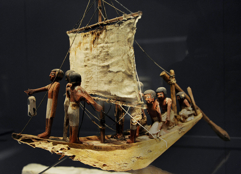 Появлению лодок предшествовал плот, возможности которого Хейердал показал во время путешествия «Кон-Тики». Но со временем человечество переключилось на более надежную конструкцию. Древние египтяне и жители Междуречья, чьи страны не изобиловали древесиной, сначала плели свои суденышки из тростника или обтягивали их борта шкурами. Потом, по мере перехода на дерево, опытным путем пришли к идее киля, шпангоутов и мачт со все более сложным такелажем. Для движения, в зависимости от погоды, могли использоваться как паруса, так и весла. По меркам сегодняшнего времени суда древних египтян смотрятся скорлупками: 14–20 метров в длину и 5 метров в ширину. Тем не менее на них уже можно было выходить из уютных рек и пробовать себя в противоборстве с морскими волнами.