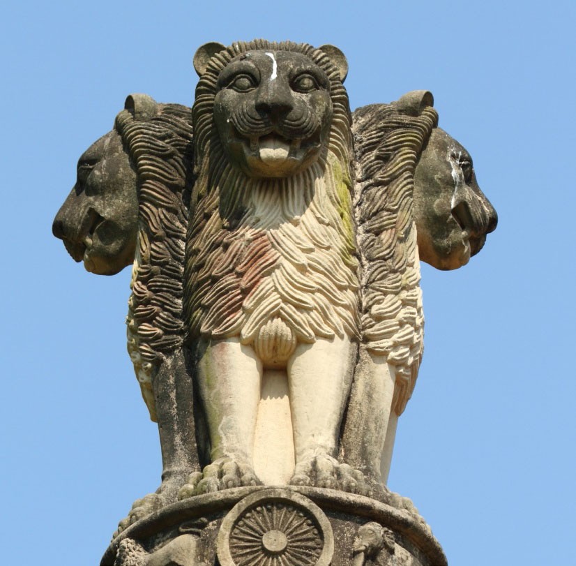 «Львиная капитель» царя Ашоки, известный культурный символ Индии, — с 1950 года официально утвержденная эмблема государства. В III веке до н. э. этот могущественный царь, насаждавший буддизм, приказывал сооружать памятные столпы в местах, связанных с Буддой. Знаменитая скульптурная группа из четырех львов — верхняя часть такого столпа, воздвигнутого в Сарнатхе, штат Уттар-Прадеш, на месте первой проповеди Просветленного. Царственный лев — популярный в буддизме символ. Самого Будду называют львом (клана) Шакья, а его учение — «львиным рыком». В буддистской традиции львы — это защитники истины, их часто изображают поддерживающими троны будд и бодхисаттв.