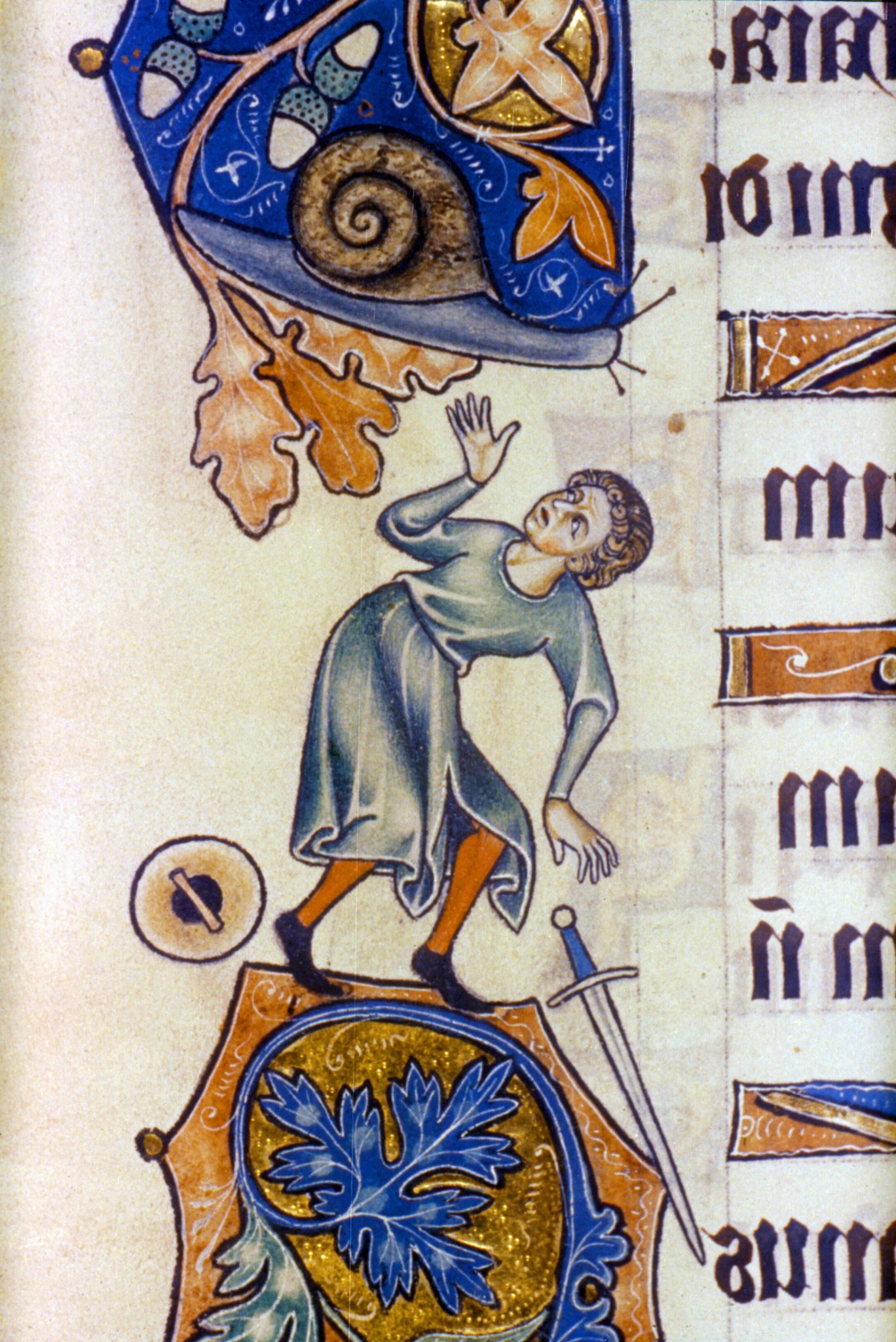 Олицетворение трусости, поскольку, завидев опасность, прячется в раковину. Этого моллюска часто изображали побеждающим рыцарей в пародийном сражении — популярный сюжет в фольклоре. Как предположила исследовательница Лилиан Рэндалл, в улиточьей раковине также видели намек на доспехи воина.