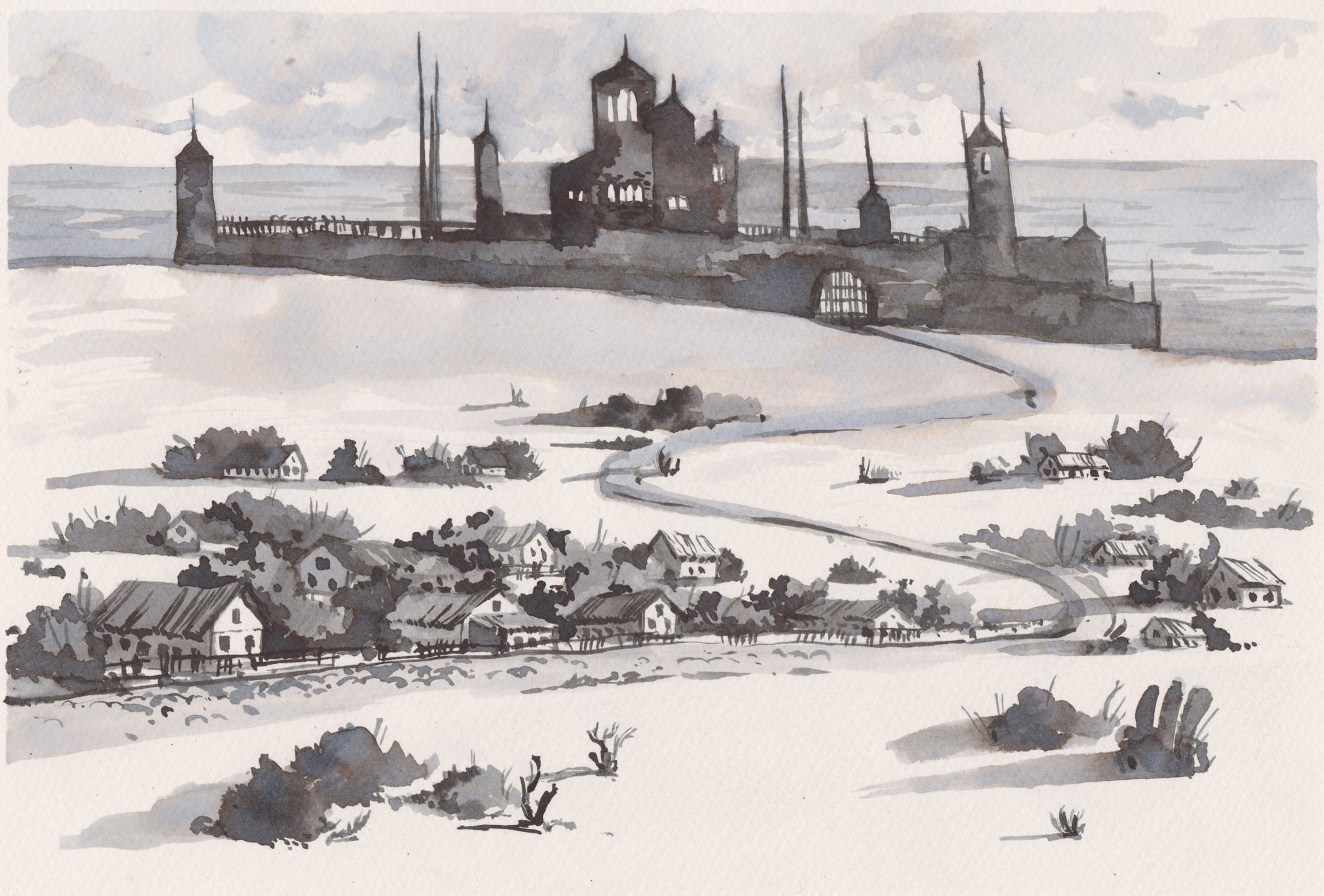 Наконец нашему взгляду открылась цветущая долина с расположенной в ее сердце миниатюрной станицей, похожей на скомканный павловопосадский платок, лихо сброшенный с головы в придорожные травы. Это и была Райская, и вишенкой на торте на холме над ней раскинулось прелестное шато во французском стиле.