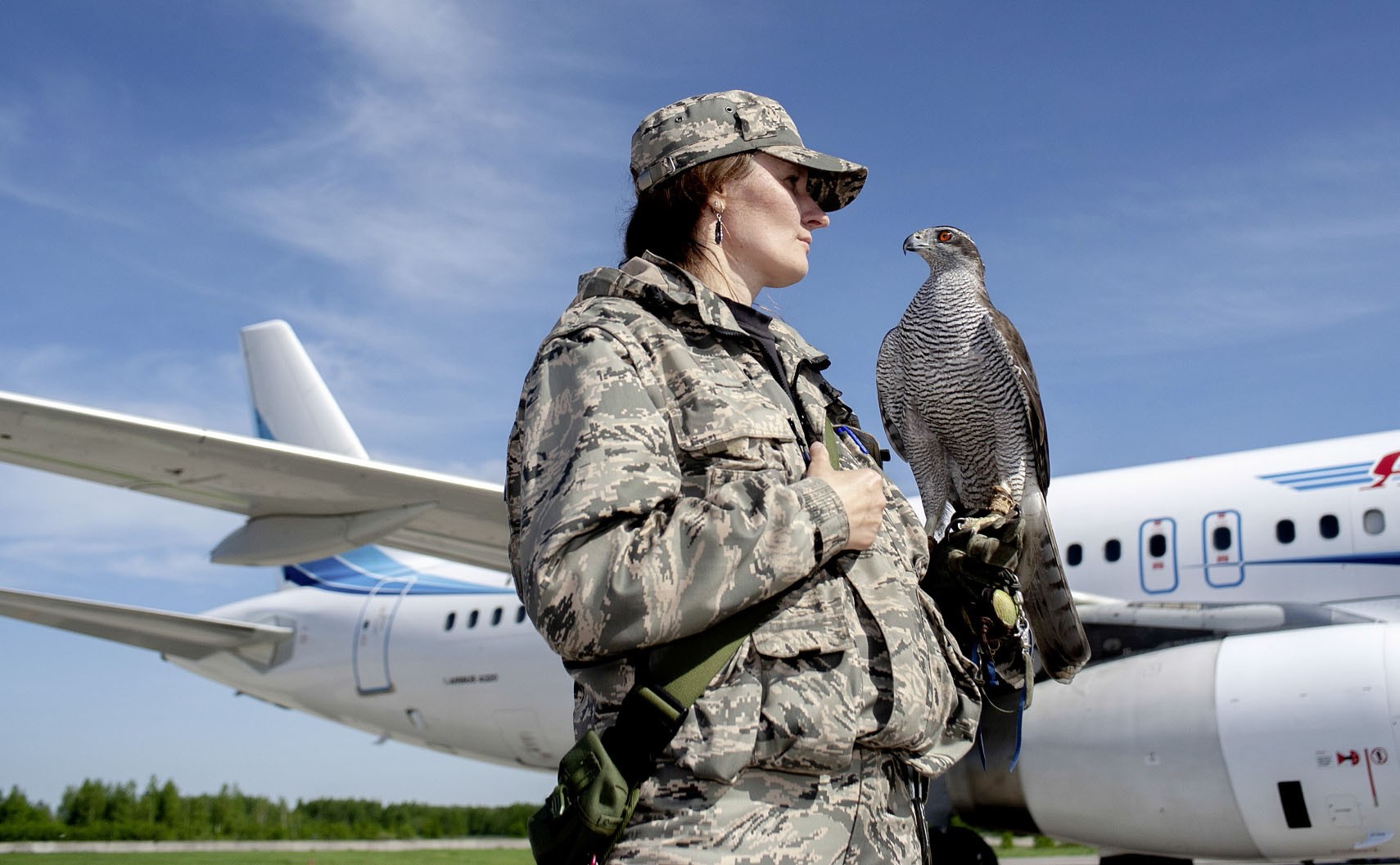 Дикие птицы опасны для самолетов. Они могут попасть в двигатель или шасси. Авиационный орнитолог Ника Рыжова-Аленичева и самка ястреба-тетеревятника Сильва обеспечивают «мирное небо» над аэропортом Домодедово как для пернатых, так и для людей