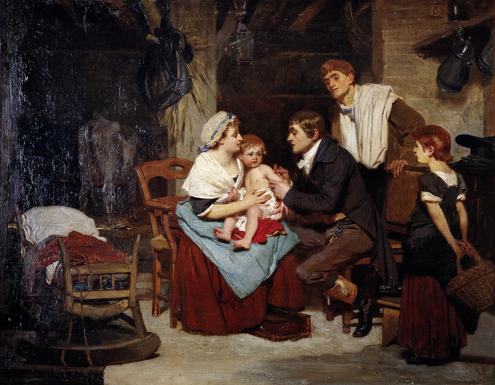 Врач Эдвард Дженнер доказал эффективность оспопрививания через намеренное заражение коровьей оспой. Люди переносили эту болезнь легко, она не передавалась от человека к человеку и впоследствии обеспечивала иммунитет к натуральной оспе. Этот метод знали и ранее. Так, в 1774 году фермер Бенджамин Джести заразил жену и детей оспой из высыпаний на вымени коровы. Однако именно Дженнер убедил общественность в пользе и безопасности прививания коровьей оспой.