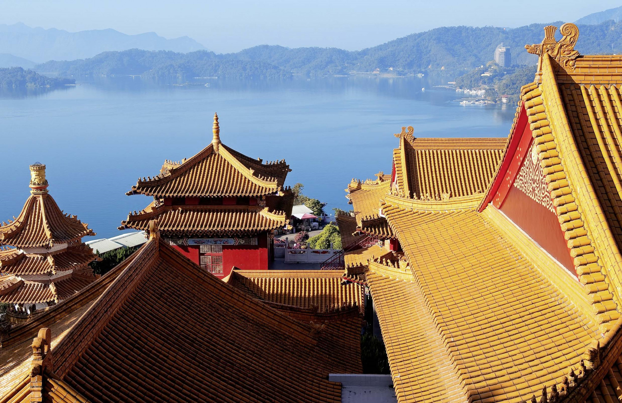 Несмотря на то что в целом Луншань посвящен милосердной буддийской Гуаньинь, здесь поклоняются сонму даосских богов, у каждого из которых своя сфера ответственности и своя ниша в храме. У одного просят совета и помощи в любви, у другого — в финансах, у третьего — в карьере. Кто-то дает детей, а кто-то — здоровье. В заднем зале храма справа живет Вэньчан, бог литературы и учености, к нему приходят студенты за помощью в сдаче экзаменов. Слева — краснолицый бог войны Гуань Юй, покровитель гангстеров и полиции. А центральная часть зала посвящена любимой богине тайваньцев Мацзу, защитнице рыбаков и мореплавателей. Там, за ограждением, спиной к посетителям за столом сидят три монаха и сосредоточенно перебирают бумаги. Монахи больше похожи на делопроизводителей или участников симпозиума по вопросам борьбы с COVID‑19.