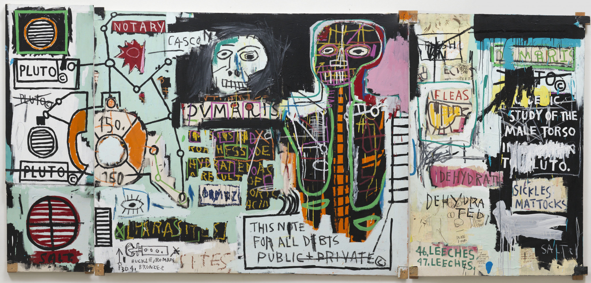 Картины Баскии в этом похожи на джазовые композиции: кажется, будто нет ни малейшего усилия, никакого труда, однако стоит присмотреться – и мы чувствуем железный композиционный остов в каждом из этих «спонтанно» созданных холстов. Сегодня его работы стоят десятки миллионов долларов, их хранят в сейфах и бережно экспонируют в белоснежных выставочных залах, но при этом сама живопись Баскии поражает своей безудержной дикостью и страстью к разрушению всех возможных границ – так же, как и сорок лет назад.