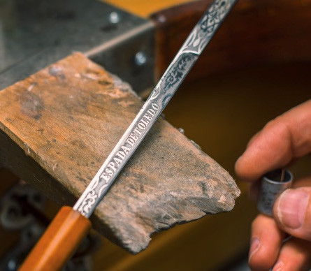 Новый маэстро-эспадеро (мастер оружейных дел) Хулио Рамирес временно работает на удаленке – в собственной мастерской. Остальные по мере необходимости приходят на фабрику строго по одному. Сегодня очередь Сантьяго, который, кроме пиара и продаж, отвечает за монтаж эфесов.