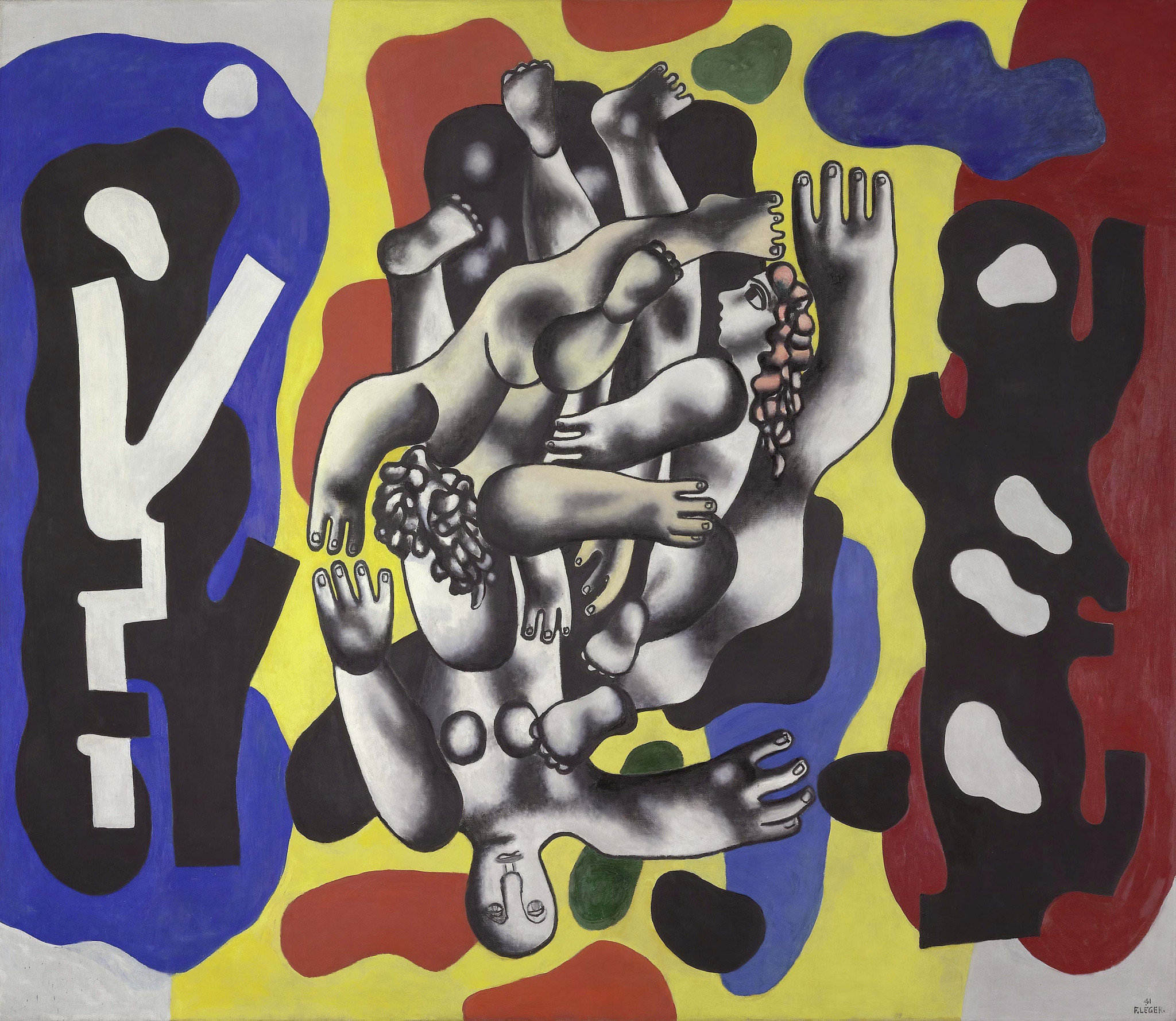 В Штатах Леже вспоминал о марсельцах, наблюдая за толпой в разноцветных купальных костюмах в общественном бассейне. Его завораживало пестрое смешение тел, отрывавшихся от земли перед погружением в глубину и на миг, казалось, избавлявшихся от гравитации. Продолжая работу над начатой во Франции серией «Ныряльщики», Леже старался освободить персонажей от контекста, цвет – от формы, а свое искусство – от традиций натуралистического изображения людей в пейзаже.