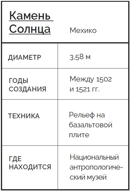 Камень Солнца – резная базальтовая плита диаметром в два человеческих роста и весом около 24 тонн. Испанские конкистадоры, христианские завоеватели Мезоамерики, когда-то зарыли его в центре ацтекской столицы Теночтитлана (современный Мехико). У ацтеков одновременно работало два календаря. По первому, 365-дневному, солнечному, отслеживали сельскохозяйственные сезоны. Он состоял из 18 месяцев, в каждом по 20 дней, а в конце года прибавлялись еще пять, считавшихся несчастливыми. Второй календарный цикл, ритуальный, был связан с фазами Луны, состоял из 260 дней и использовался для предсказаний. Дни в последовательности носили названия существ и явлений – крокодил, ветер, тростник и т.д. Каждому присваивался и порядковый номер. За 260 дней все комбинации названий и чисел исчерпывались, и цикл начинался снова, со дня «один Крокодил». Каждые 52 года начало солнечного и ритуального годовых циклов совпадало, это событие называлось «связывание лет», ацтеки отмечали его с размахом. Календарям были посвящены специальные кодексы, где перечислялись все 260 дней ритуального цикла. Отслеживали и толковали их почитаемые специалисты.